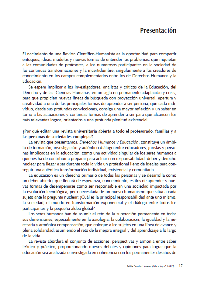 Vol. 1 Núm. 1 (2019): Vol. 1 Núm. 1 (2019): Revista DH/ED Derechos Humanos y Educación